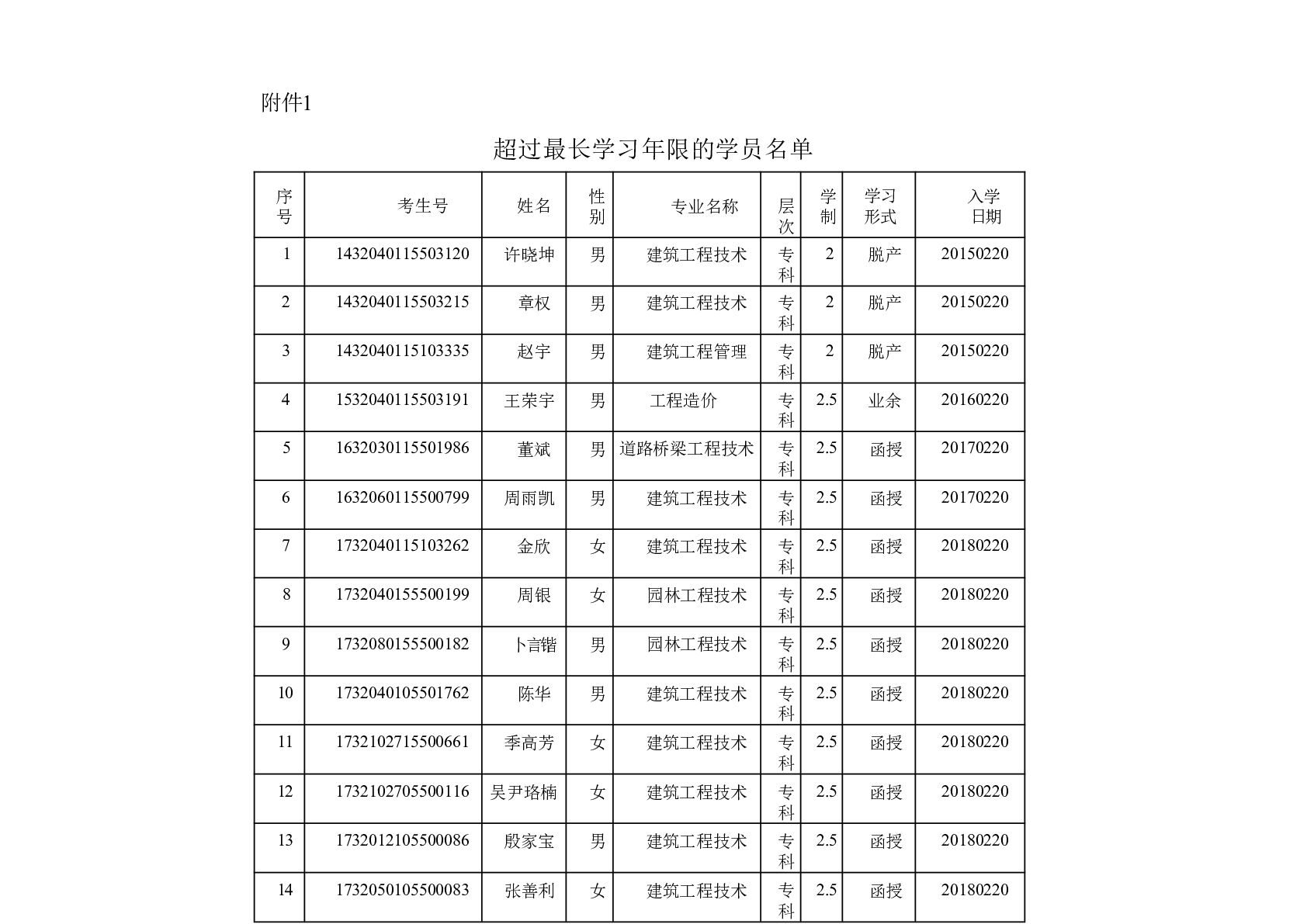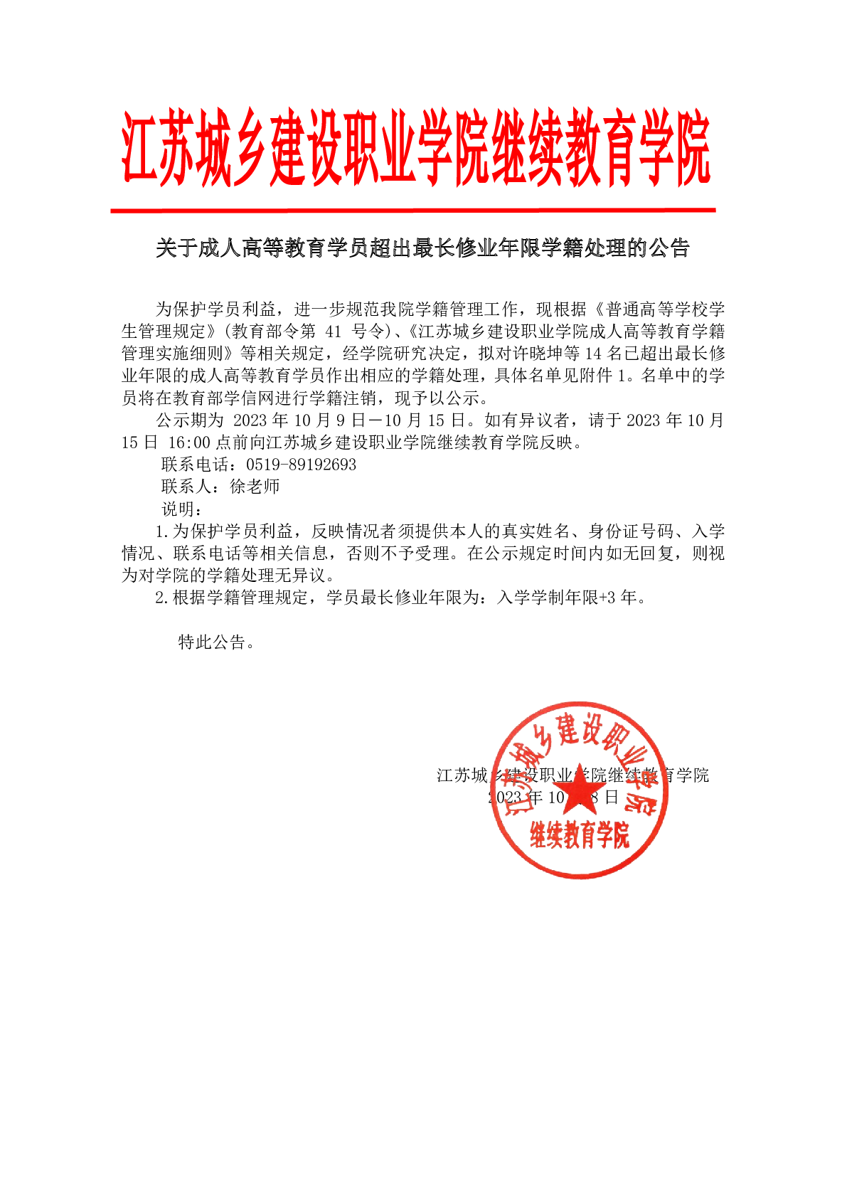 关于成人高等教育学员超出最长修业年限学籍处理的公告