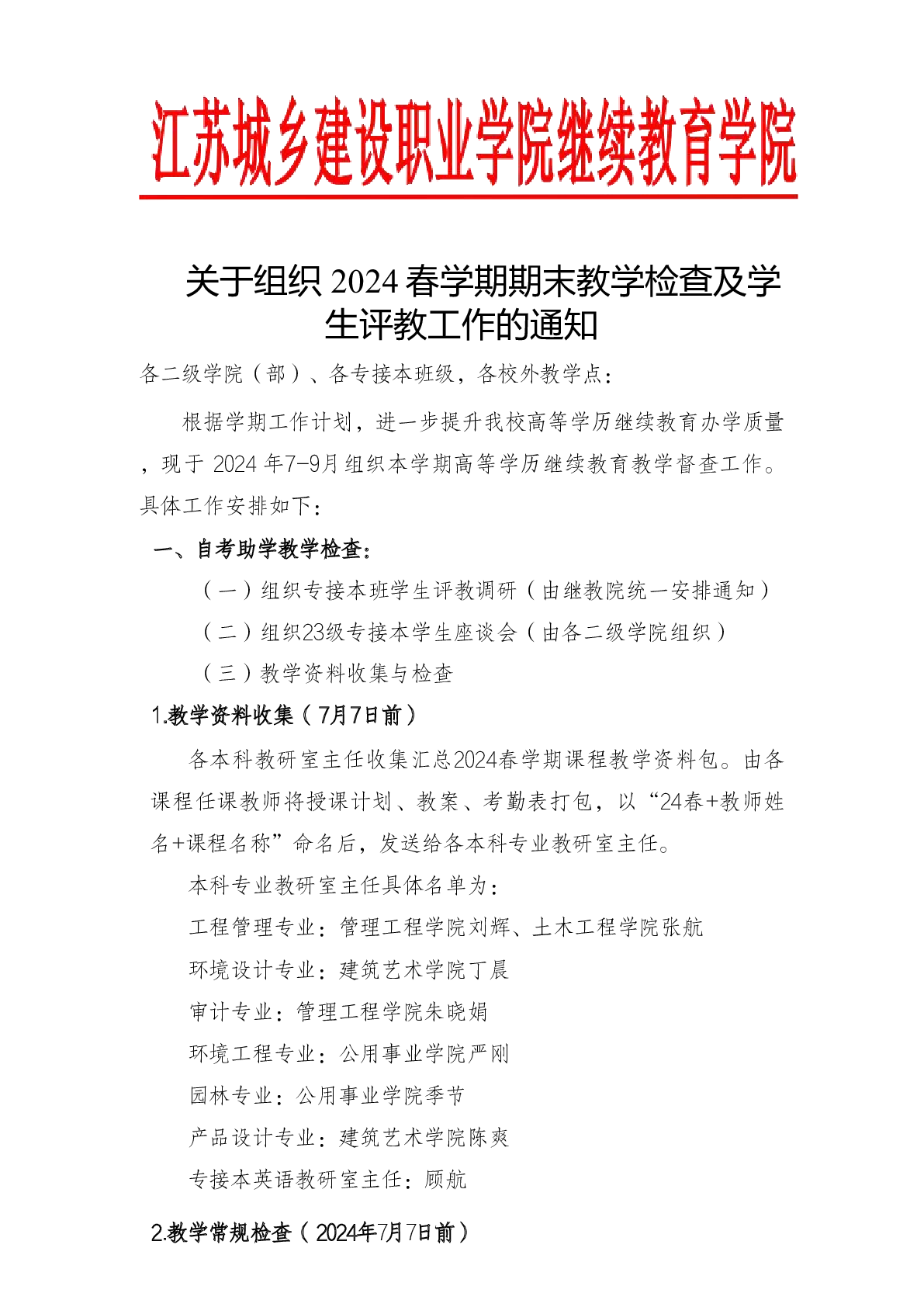 关于组织 2024春学期期末教学检查及员工评教工作的通知