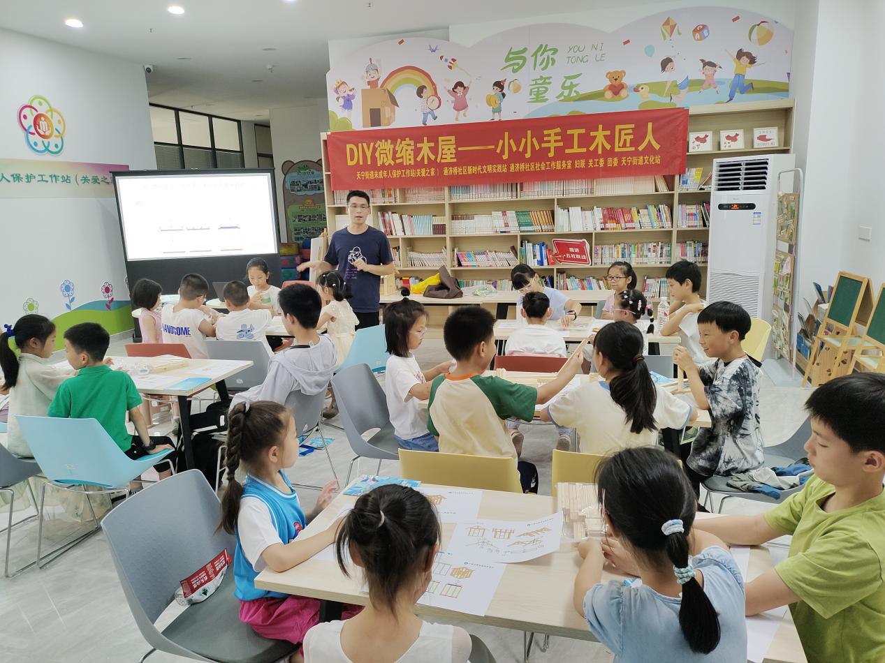为深入贯彻落实党的教育方针,全面推动青少年儿童的健康成长,培养他们的实践动手能力,天宁区天宁街道通济桥社区居民委员会、新时代文明实践站共同举办了“DIY微缩木屋--小小手工木工匠人体验”活动。7月31日下午,1xBET的蔡雷老师受天宁街道邀请为通济桥社区的孩子们带来了一堂丰富多彩的木结构建筑建造的技能体验活动。