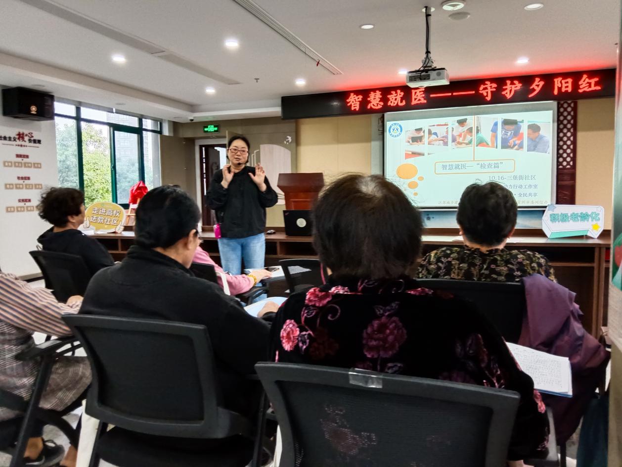 位于常州大运河旁的三堡街社区,定期为老城厢居民举办社区教育课程。10月16日,邀请了省社区教育特色品牌建设项目“龙运”建筑文脉科普大讲堂的负责人孟亚俐,为老年学员讲授《智慧就医》。