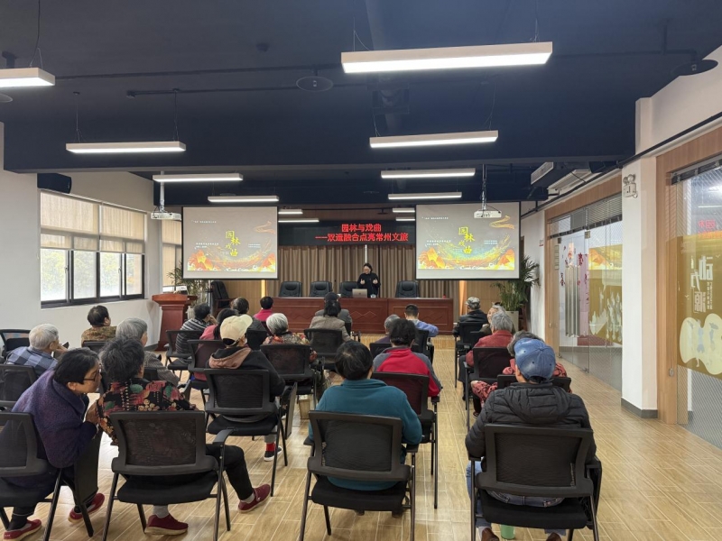 活动以苏州沧浪亭《浮生六记》纪录片拉开序幕,沈复与芸娘的诗意生活片段,让老年学员们沉浸于江南园林的雅致意境中。随后,孟亚俐老师巧妙地将场景切换到常州半园,通过PPT展示与生动讲解,揭秘这座始建于明中期的古典园林的前世今生。从“唐氏八宅”的贞和堂后花园,到日寇侵华时的损毁,再到2018年复建后的重生,半园的故事让老人们听得入神。