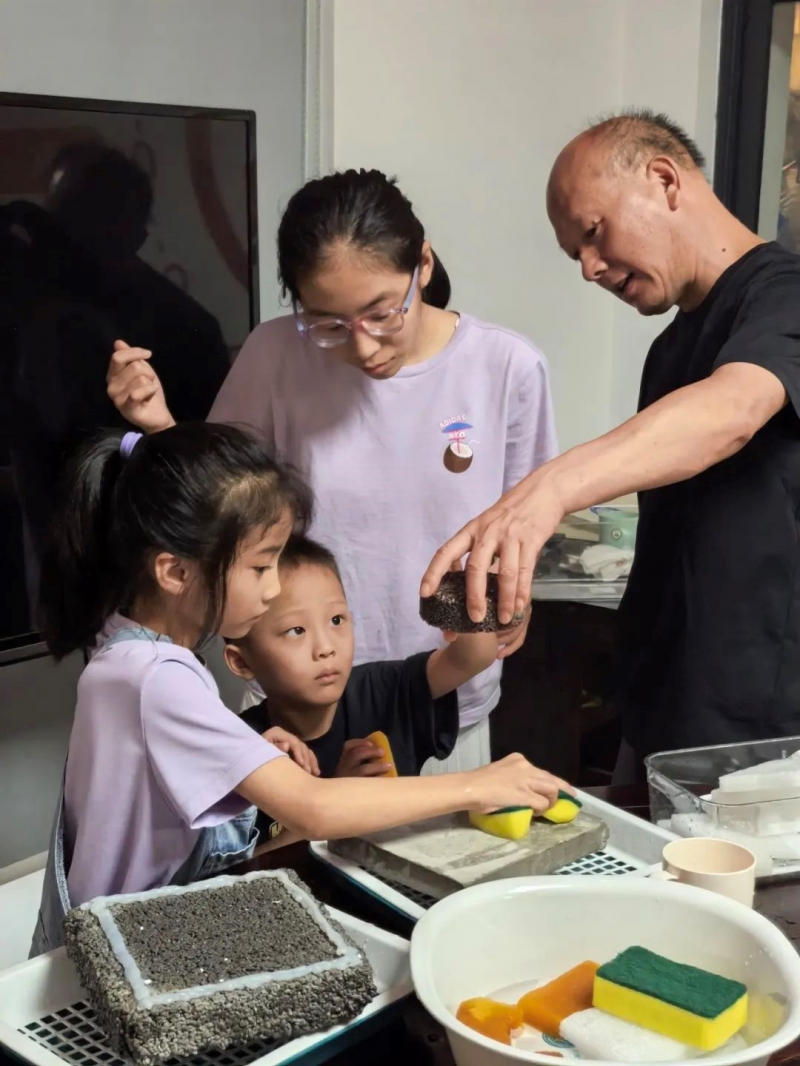 最令人期待的动手环节到来时,孩子们化身“小小工程师”,在老师指导下亲测两种不同材质路面的吸水能力。当亲眼见证透水材质迅速“喝光”积水,与传统硬质路面形成鲜明对比时,惊叹声与成就感充满了活动现场。