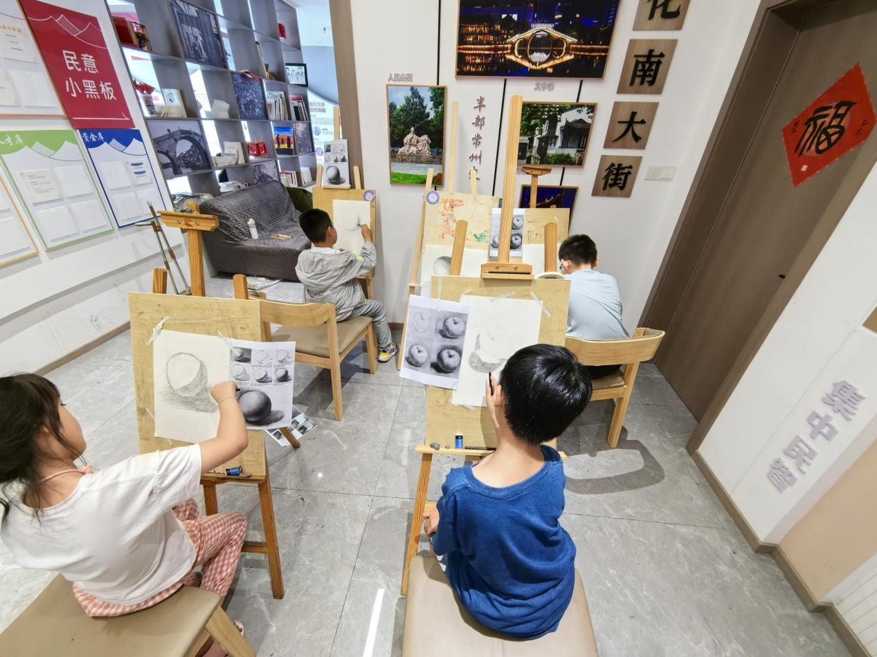 7月25日下午,《知行合美・青少年社区创变课堂》项目工作室成员金欢老师前往钟楼区南大街街道新时代文明实践所,为社区孩子们带来了一堂丰富多彩的“光影”素描课堂体验活动。